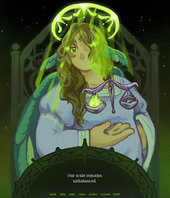 To enter the afterlife, the angel tells you, ae must weigh your deepest desire against your truth. But how deep does that desire go? And just how patient is this angel?